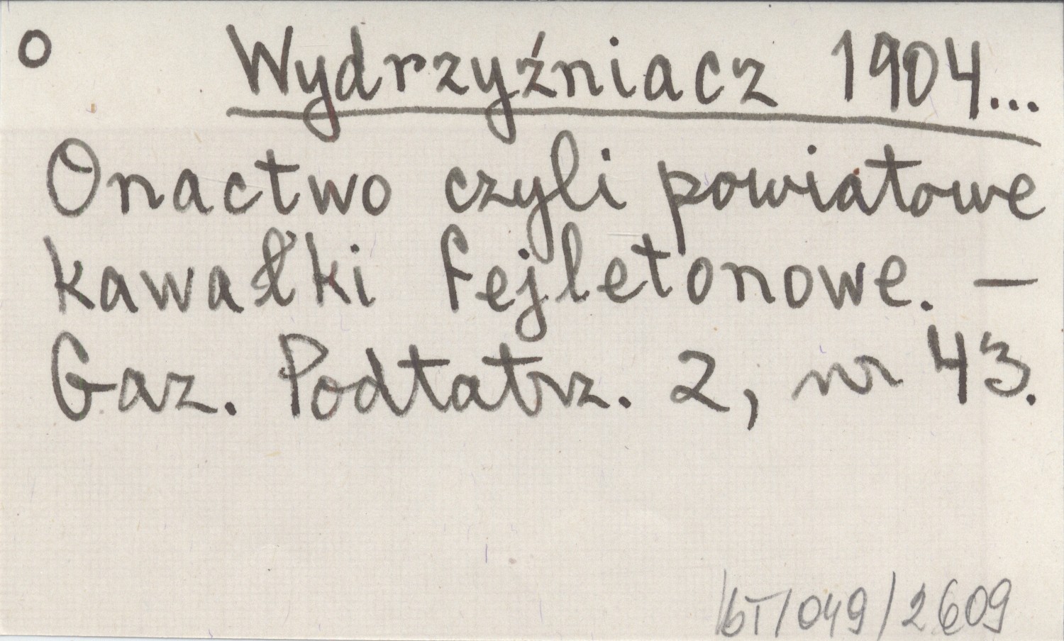 Wydrzyźniacz 1904... Onactwo czyli powiatowe kawałki fejletonowe.