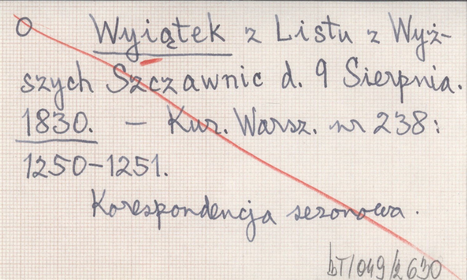 Wyiątek z Listu z Wyższych Szczawnic d. 9 Sierpnia. 1830