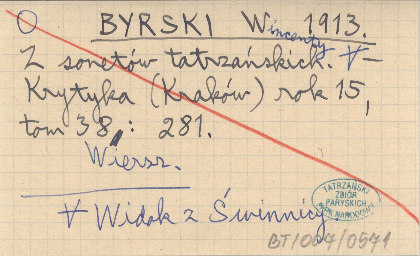 Krytyka (Kraków) , R. 15, t. 38: 281. Wiersz.