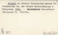 Wyjątki ze statutu Towarzystwa Muzeum Tatrzańskiego im. dra Tytusa Chałubińskiego w Zakopanem. 1889