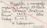 Wyjątki z monografji wydanej z okazji 25-lecia Domu Zdrowia "Bratnia Pomoc". 1927