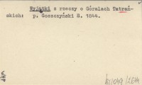Wyjątki z rzeczy o Góralach Tatrańskich.