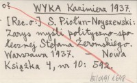 WYKA Kazimierz 1937 S. Piołun-Noyszewski: Zarys myśli polityczno-społecznej Stefana Żeromskiego. Warszawa 1937.