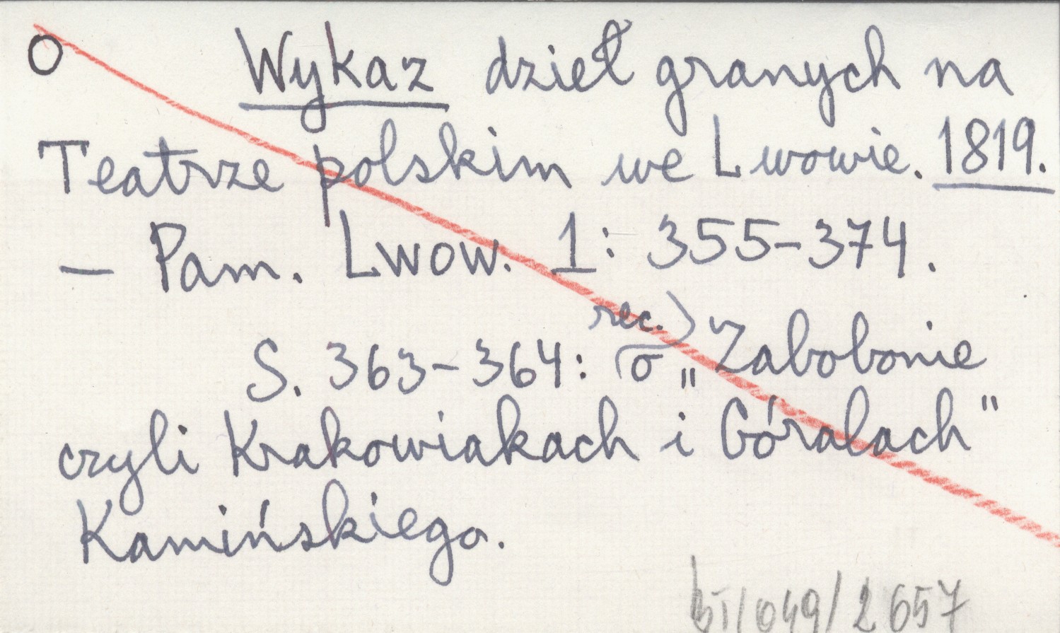 Pamiętnik Lwowski, 1: 355-374. S. 363-364: rec. o "Zabobonie czyli Krakowiakach i Góralach" Kamińskiego.