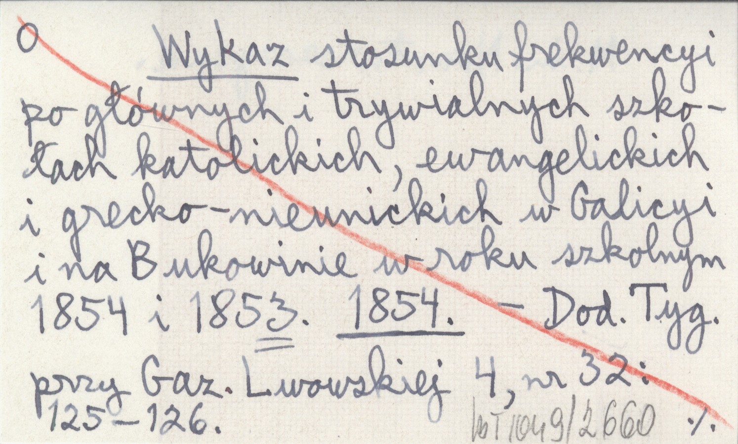 Wykaz stosunku frekwencyi po głównych i trywialnych szkołach katolickich, ewangelickich i grecko-nieunickich w Galicyi i na Bukowinie w roku szkolnym 1854 i 1853. 1854
