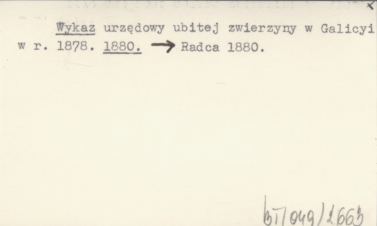 Wykaz urzędowy ubitej zwierzyny w Galicyi w r. 1878. 1880