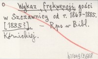 Wykaz frekwencji gości w Szczawnicy od r. 1867-1885. [1885?]