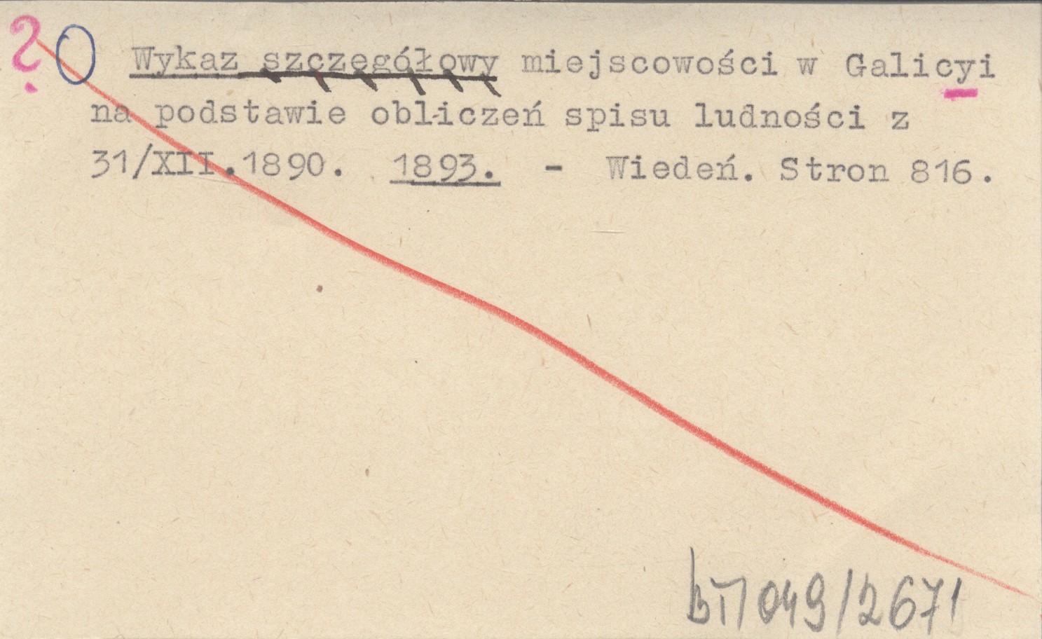 Wykaz szczegółowy miejscowości w Galicyi na podstawie obliczeń spisu ludności z 31/XII.1890. 1893