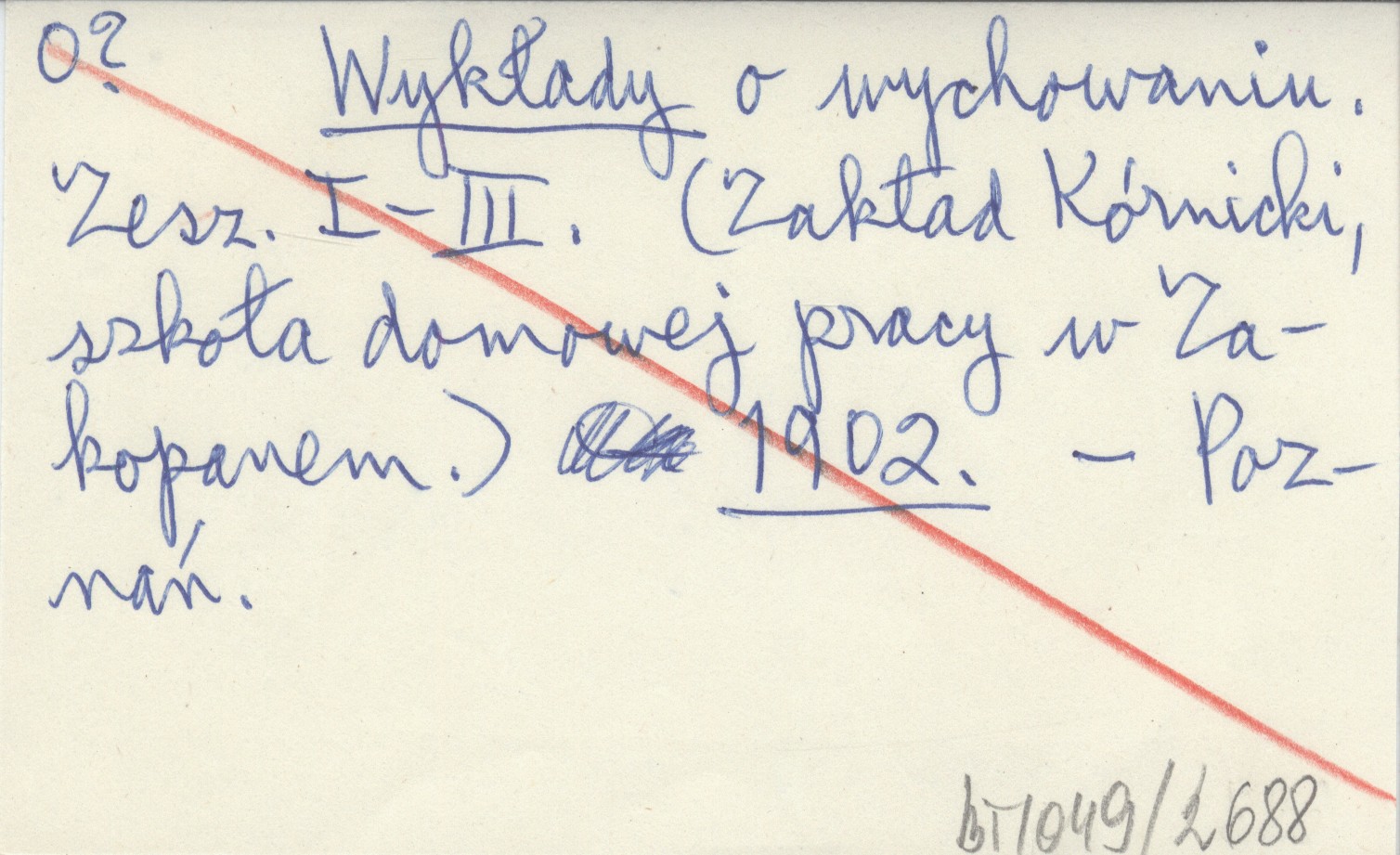 Wykłady o wychowaniu. Zesz. I-III. (Zakład Kórnicki, szkoła domowej pracy w Zakopanem). 1902