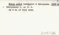 Wykaz gości bawiących w Zakopanem. 1899 a