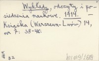 Wykłady, odczyty i posiedzenia naukowe. 1914