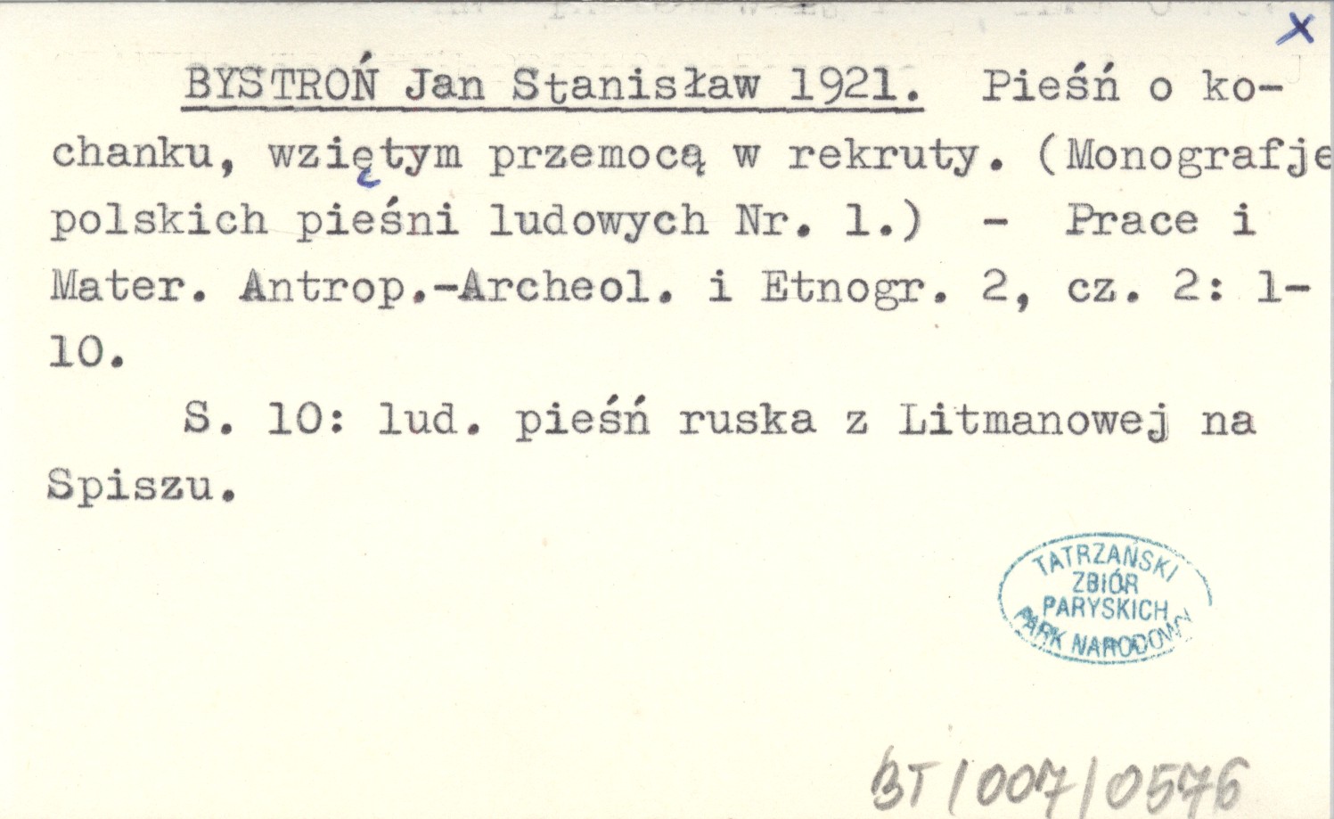Prace i Materiały Antopologiczno-Archeologiczne i Etnograficzne, 2, cz. 2: 1-10. S. 10: ludowa pieśń ruska z Litmanowej na Spiszu.