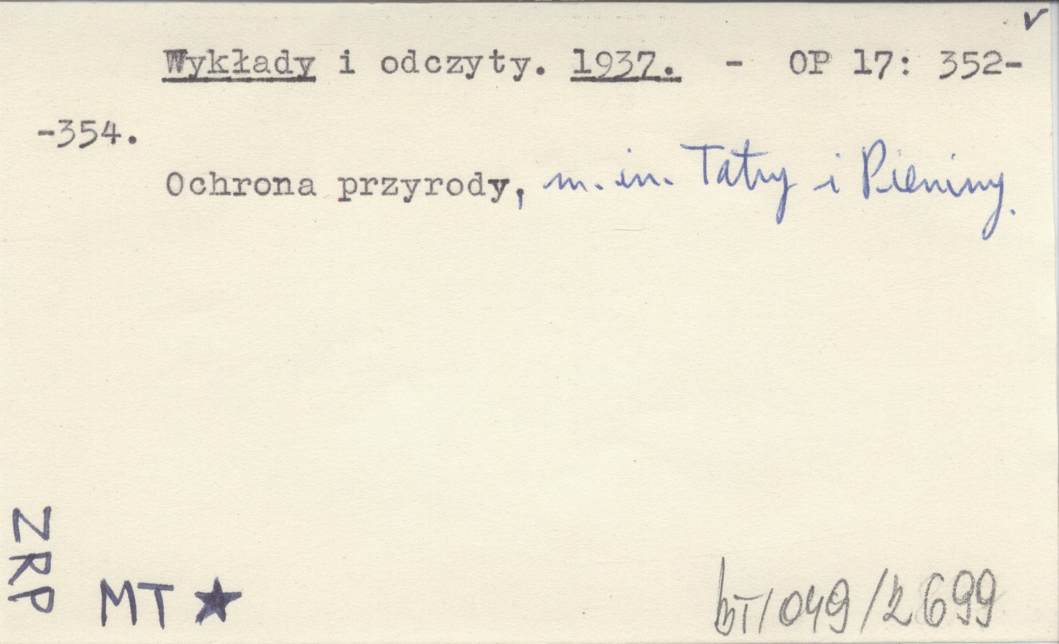 Ochrona Przyrody, 17: 352-354. Ochrona przyrody, m.in. Tatry i Pieniny.