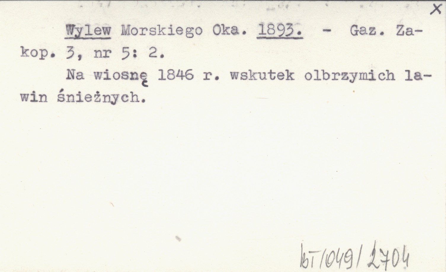 Gazeta Zakopiańska, 3, nr 5: 2. Na wiosnę 1846 r. wskutek olbrzymich lawin śnieżnych.