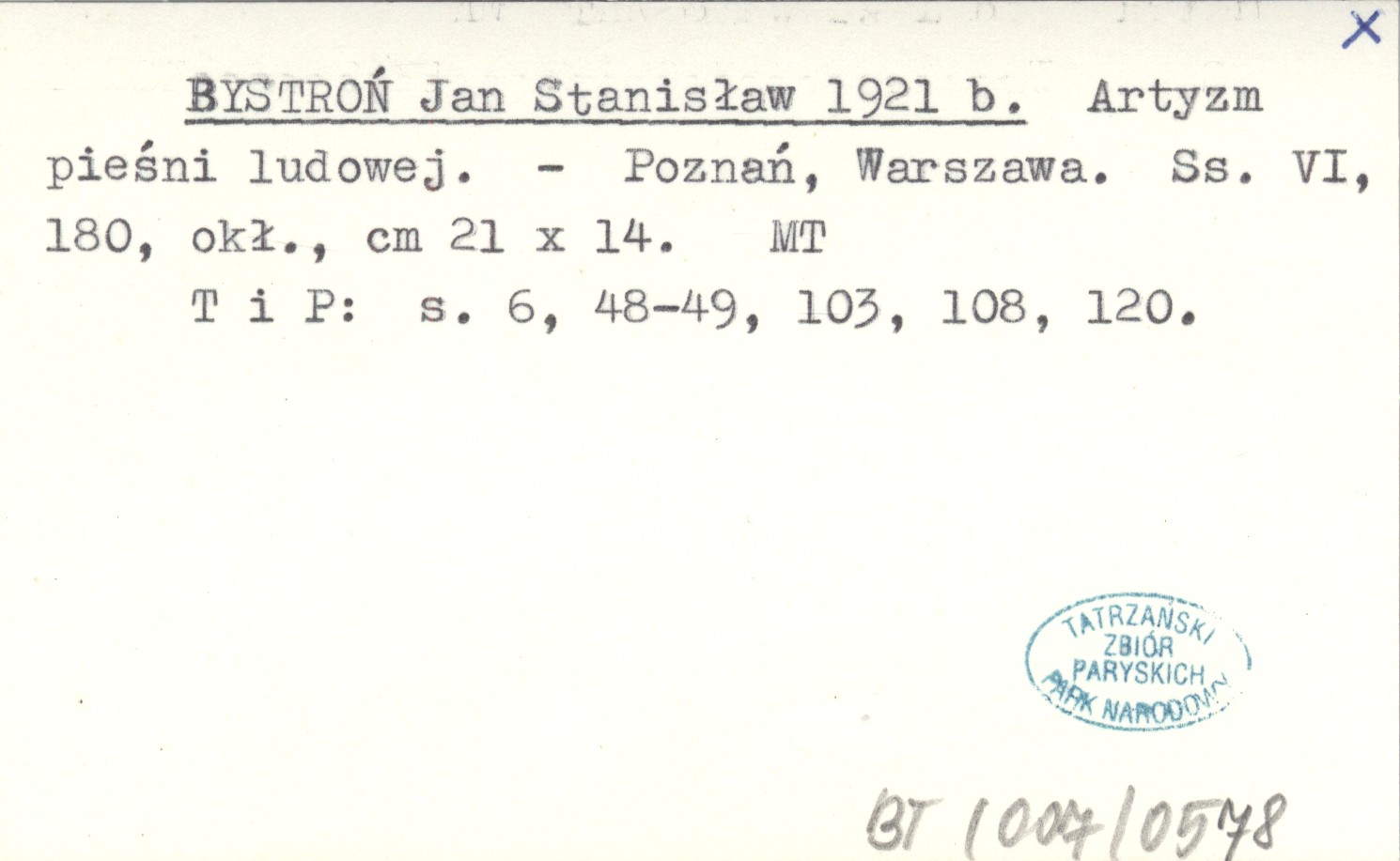 BYSTROŃ Jan Stanisław 1921 b Artyzm pieśni ludowej.