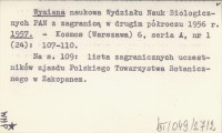 Wymiana naukowa Wydziału Nauk Biologicznych PAN z zagranicą w drugim półroczu 1956 r. 1957