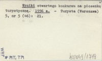 Wyniki otwartego konkursu na piosenkę turystyczną. 1956 a