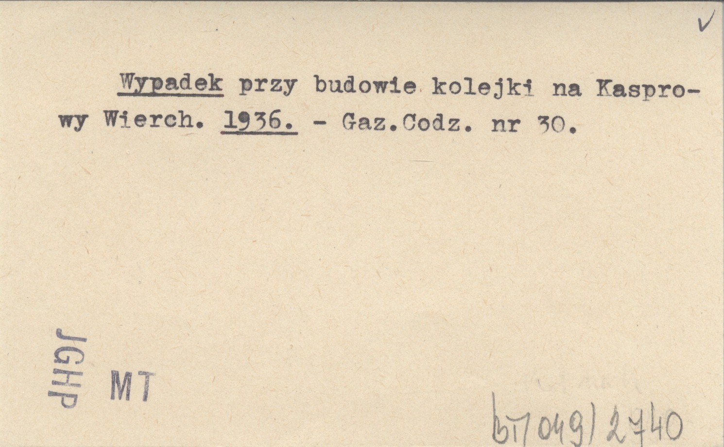 Wypadek przy budowie kolejki na Kasprowy Wierch. 1936