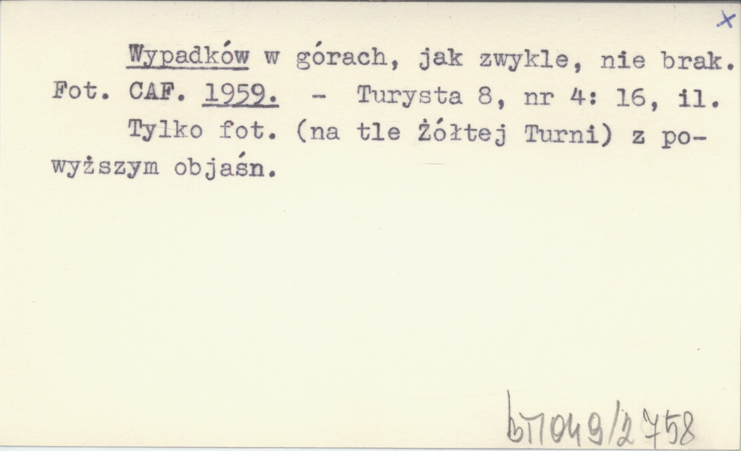 Wypadków w górach, jak zwykle, nie brak. Fot. CAF. 1959