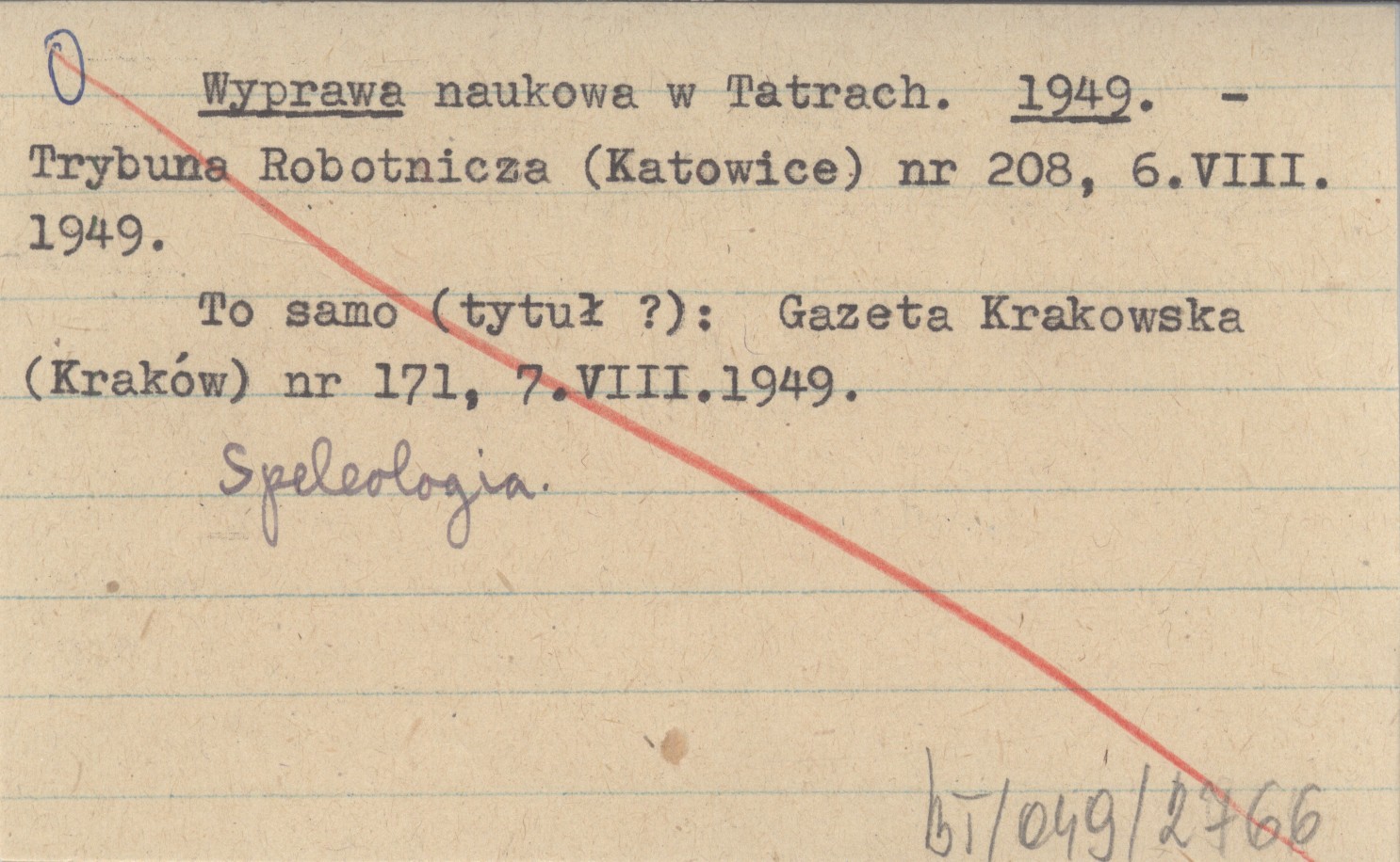 Trybuna Robotnicza (Katowice) , Nr 208, 6 VIII 1949. Speleologia. To samo (tytuł ?): Gazeta Krakowska (Kraków) nr 171, 7 VIII 1949.