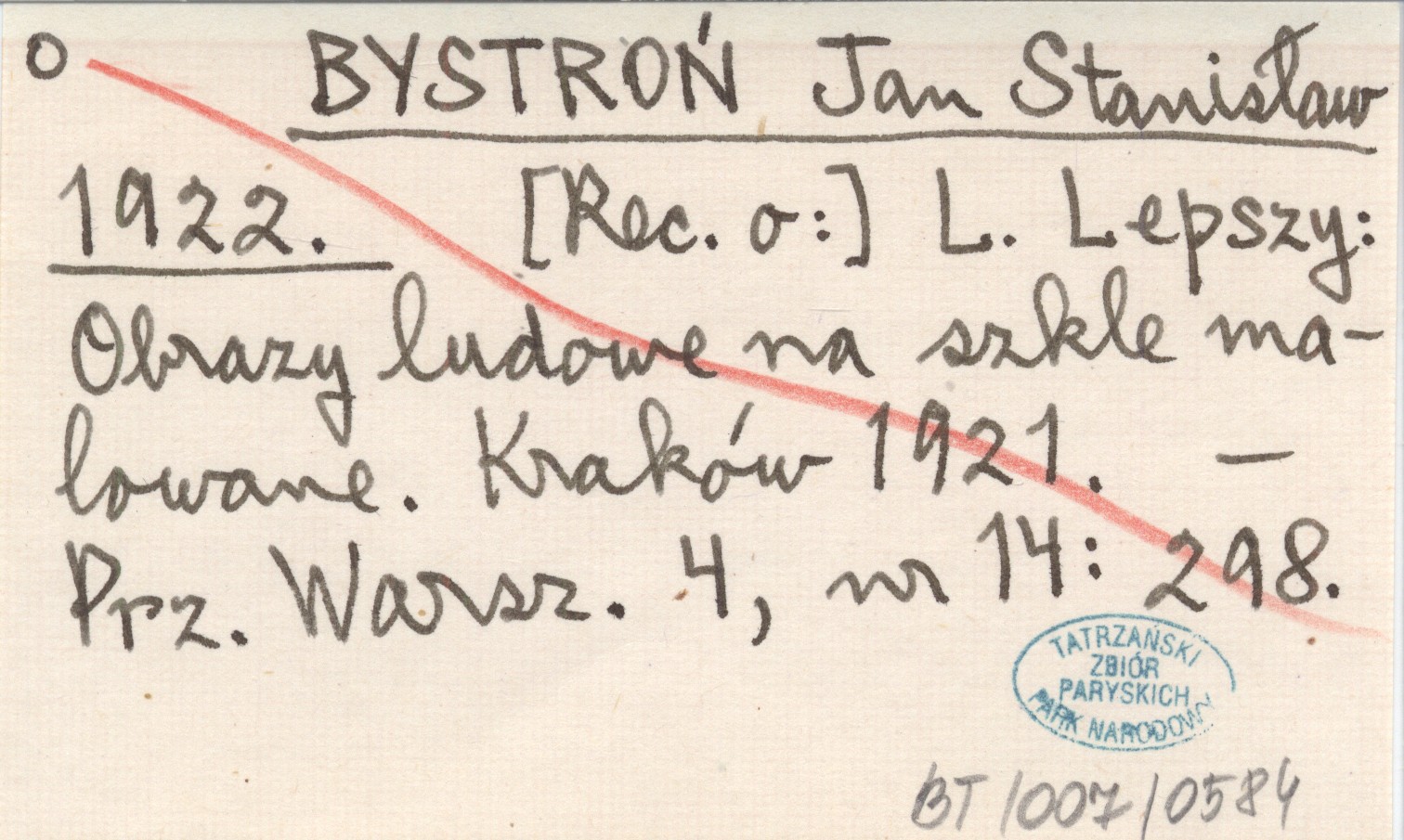 BYSTROŃ Jan Stanisław 1922 L. Lepszy: Obrazy ludowe na szkle malowane. Kraków 1921.