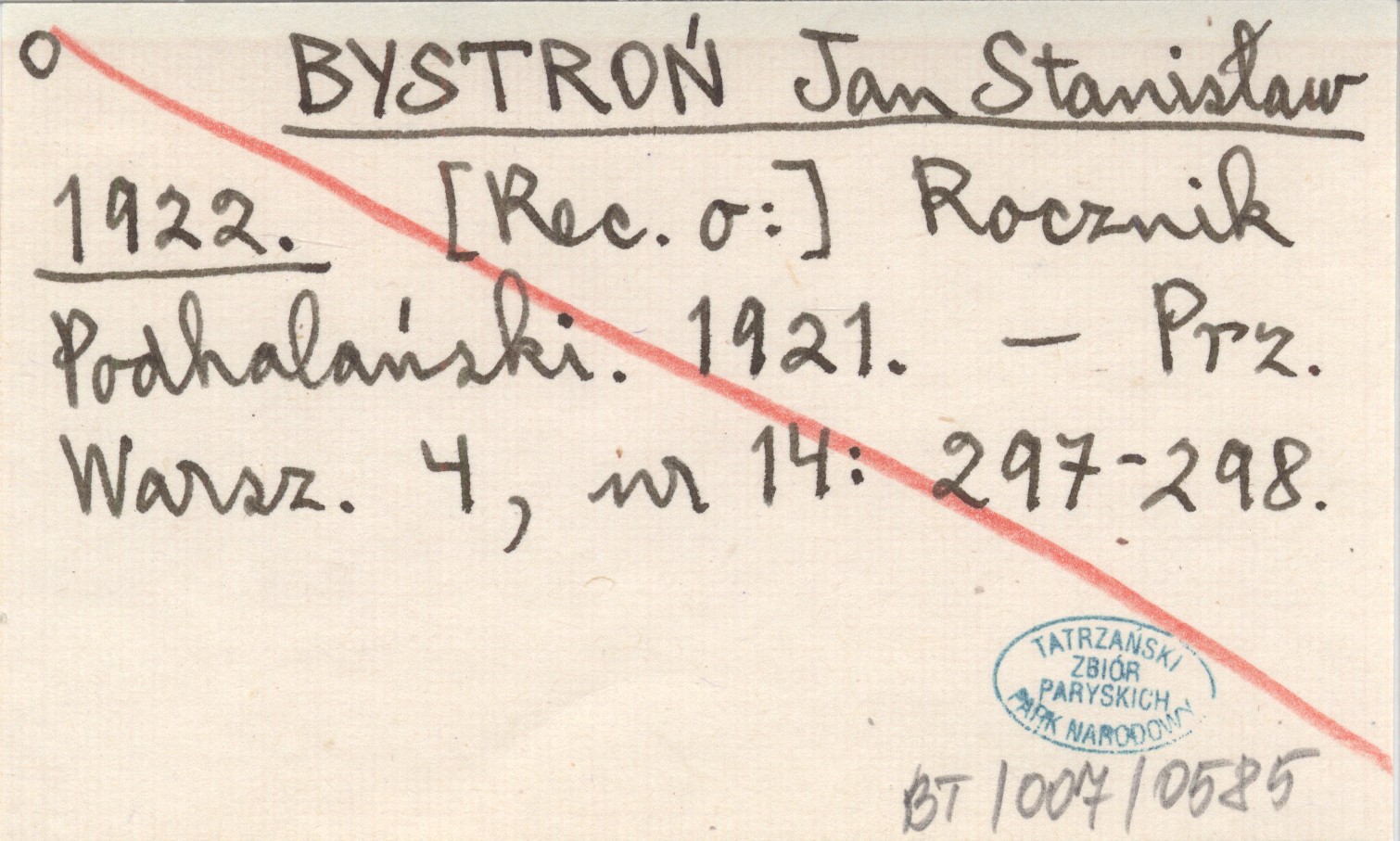 BYSTROŃ Jan Stanisław 1922 Rocznik Podhalański. 1921.