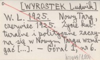 W. L. [WYROSTEK Ludwik] 1925 Nowy Targ, czerwiec 1925. Życie kulturalne i polityczne zaczyna się w Nowym Targu wzmagać [...].