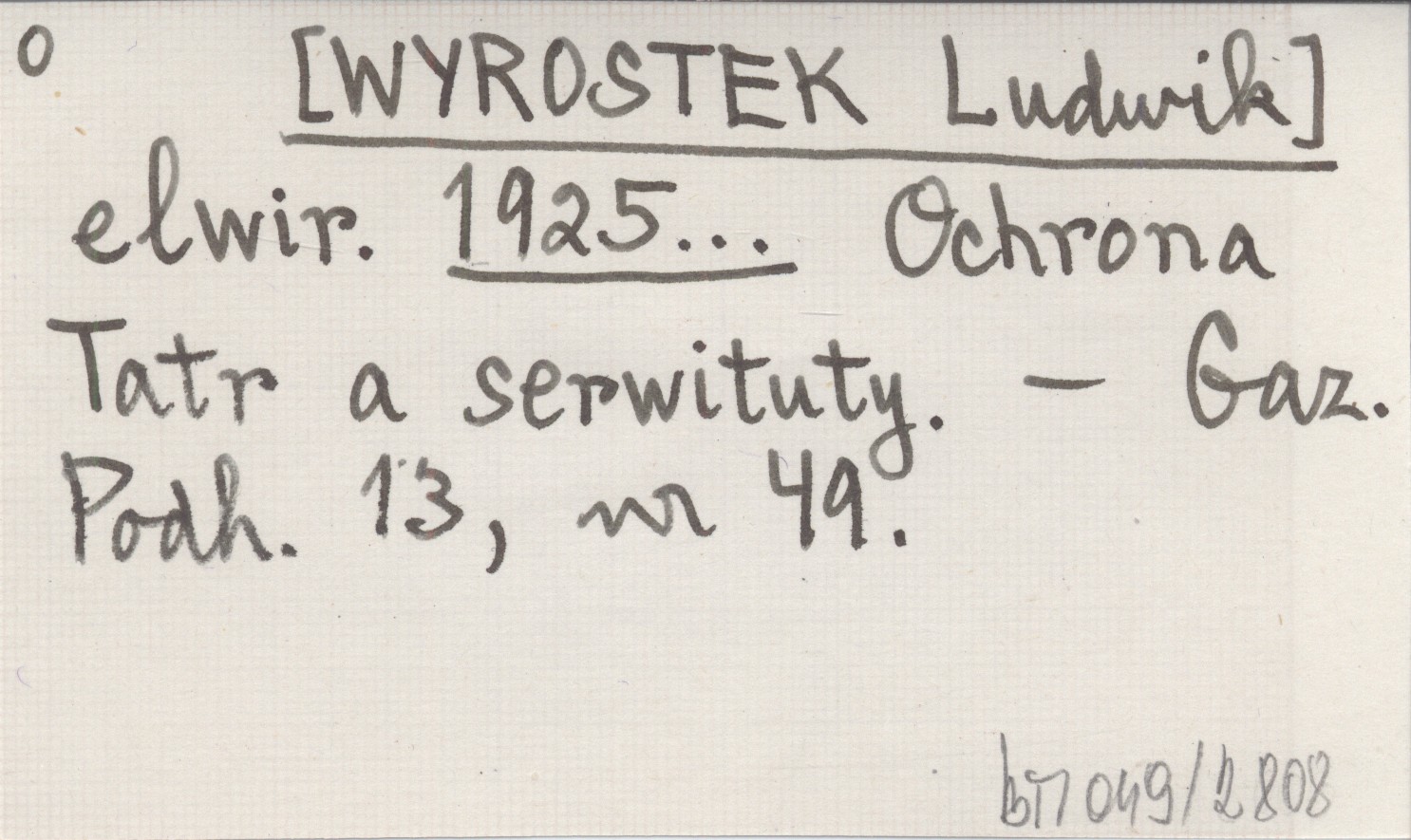 elwir. [WYROSTEK Ludwik] 1925... Ochrona Tatr a serwituty.
