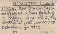 WYROSTEK Ludwik 1932 a Ród Dragów-Sasów na Węgrzech i Rusi Halickiej.