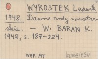 WYROSTEK Ludwik 1948 Dawne rody nowotarskie.