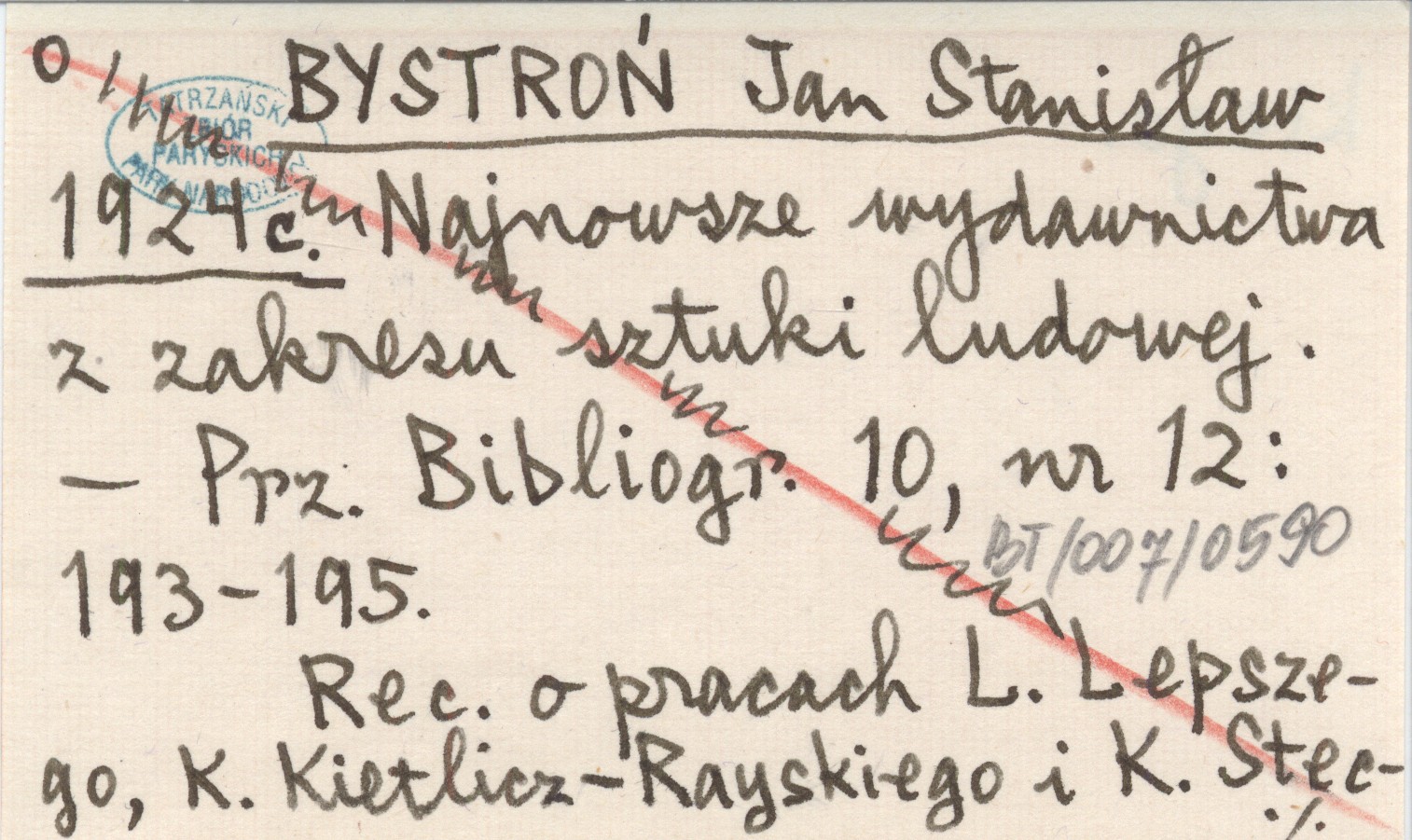 Przewodnik Bibliograficzny, 10, nr 12: 193-195. Rec. o pracach L. Lepszego, K. Kietlicz-Rayskiego i K. Steckiego.