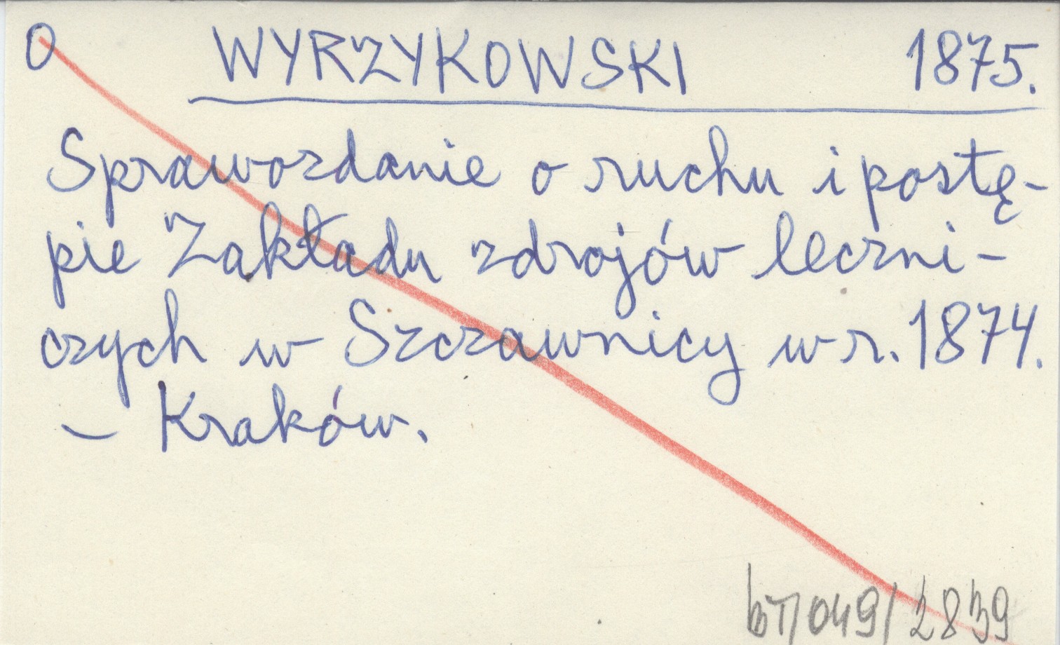 WYRZYKOWSKI 1875 Sprawozdanie o ruchu i postępie Zakładu zdrojów leczniczych w Szczawnicy w r. 1874.