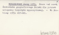 WYRZYKOWSKI Jerzy 1975 Prace nad oceną środowiska geograficznego Polski dla potrzeb urlopowej turystyki wypoczynkowej.