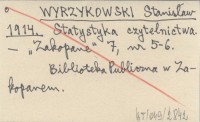 WYRZYKOWSKI Stanisław 1914 Statystyka czytelnictwa.
