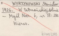WYRZYKOWSKI Stanisław 1901 [Wiersze:] Skrzydlate ognie. Miesięczne światło. Ponad przepaście. Limba. W odwiecerz bladą.