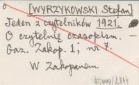 Jeden z czytelników [WYRZYKOWSKI Stefan] 1921 O czytelnię czasopism.