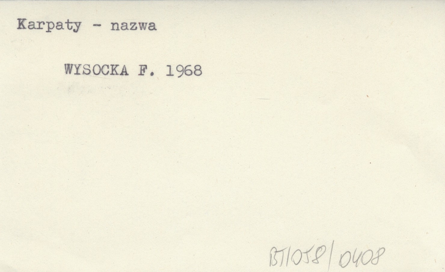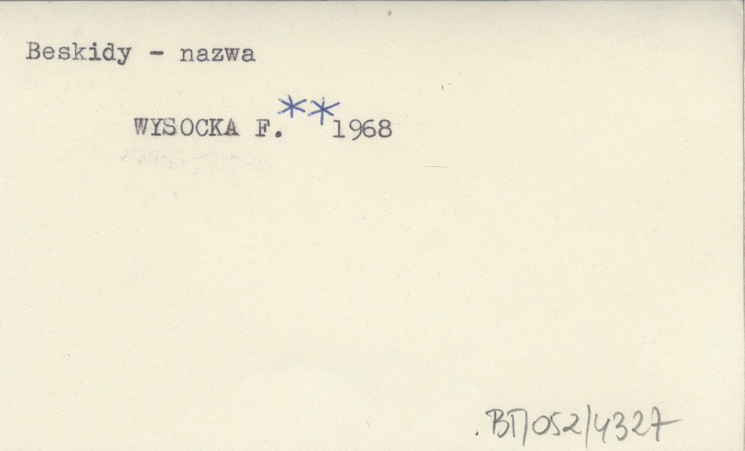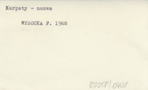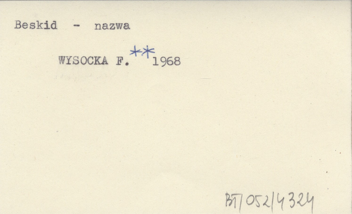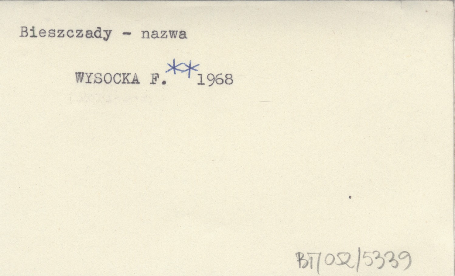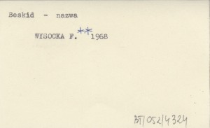 WYSOCKA Felicja 1968 Nazwa Bieszczady i Beskidy w świetle badań historyczno-językowych.