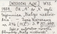 WYS. [WYSOCKI Adam W.] 1959 Od "A" do "K" czyli tajemnica "Białego niedźwiedzia".