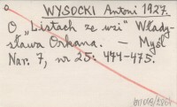 WYSOCKI Antoni 1927 O "Listach ze wsi" Władysława Orkana.
