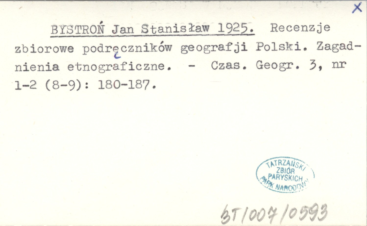 BYSTROŃ Jan Stanisław 1925 Recenzje zbiorowe podręczników geografji Polski. Zagadnienia etnograficzne.