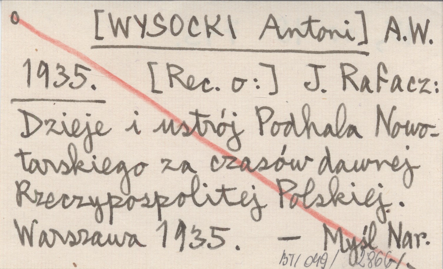 A.W. [WYSOCKI Antoni] 1935 J. Rafacz: Dzieje i ustrój Podhala Nowotarskiego za czasów dawnej Rzeczypospolitej Polskiej. Warszawa 1935.