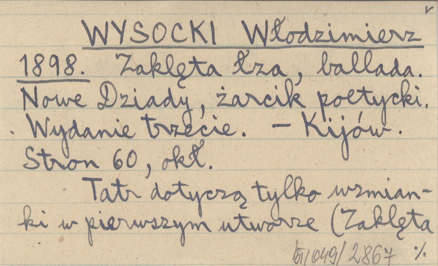 WYD: 3 Kijów , 60 s., okł. Tatr dotyczą tylko wzmianki w pierwszym utworze (Zaklęta łza) na s. 7 i 8. REC: CHMIELOWSKI P. 1895 (rec. z wcześniejszego wydania).
