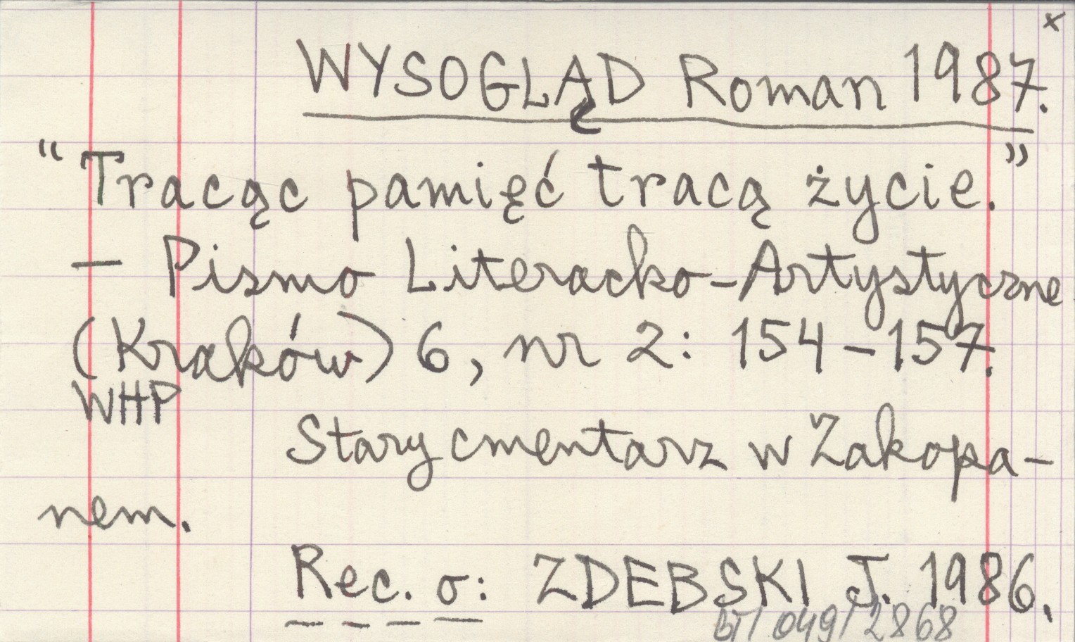 Pismo Literacko-Artystyczne (Kraków) , 6, nr 2: 154-157. Stary cmentarz w Zakopanem. Rec. o: ZDEBSKI J. 1986