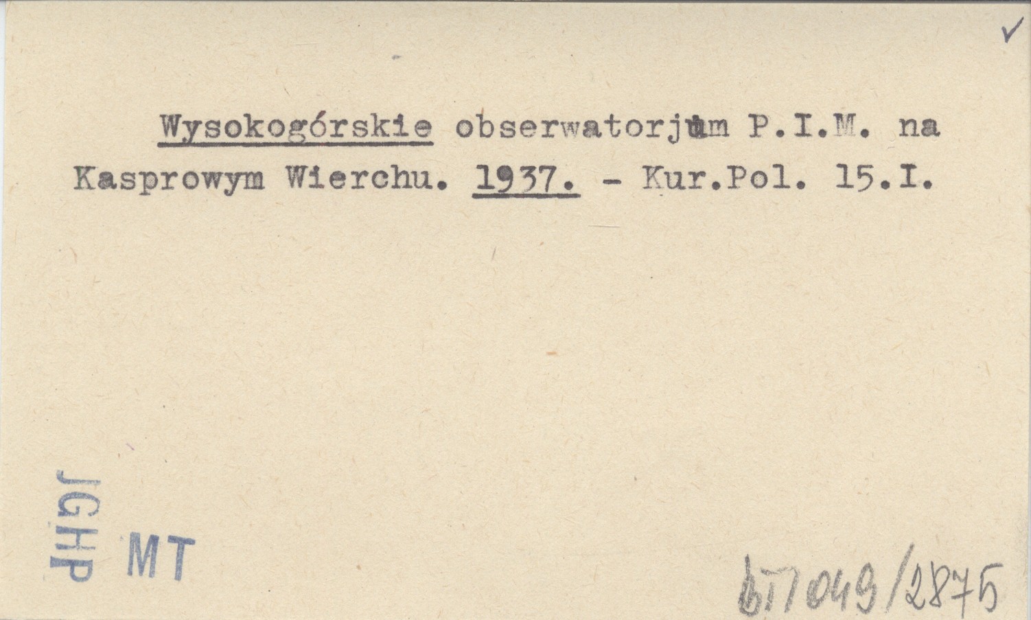 Wysokogórskie obserwatorjum P.I.M. na Kasprowym Wierchu. 1937