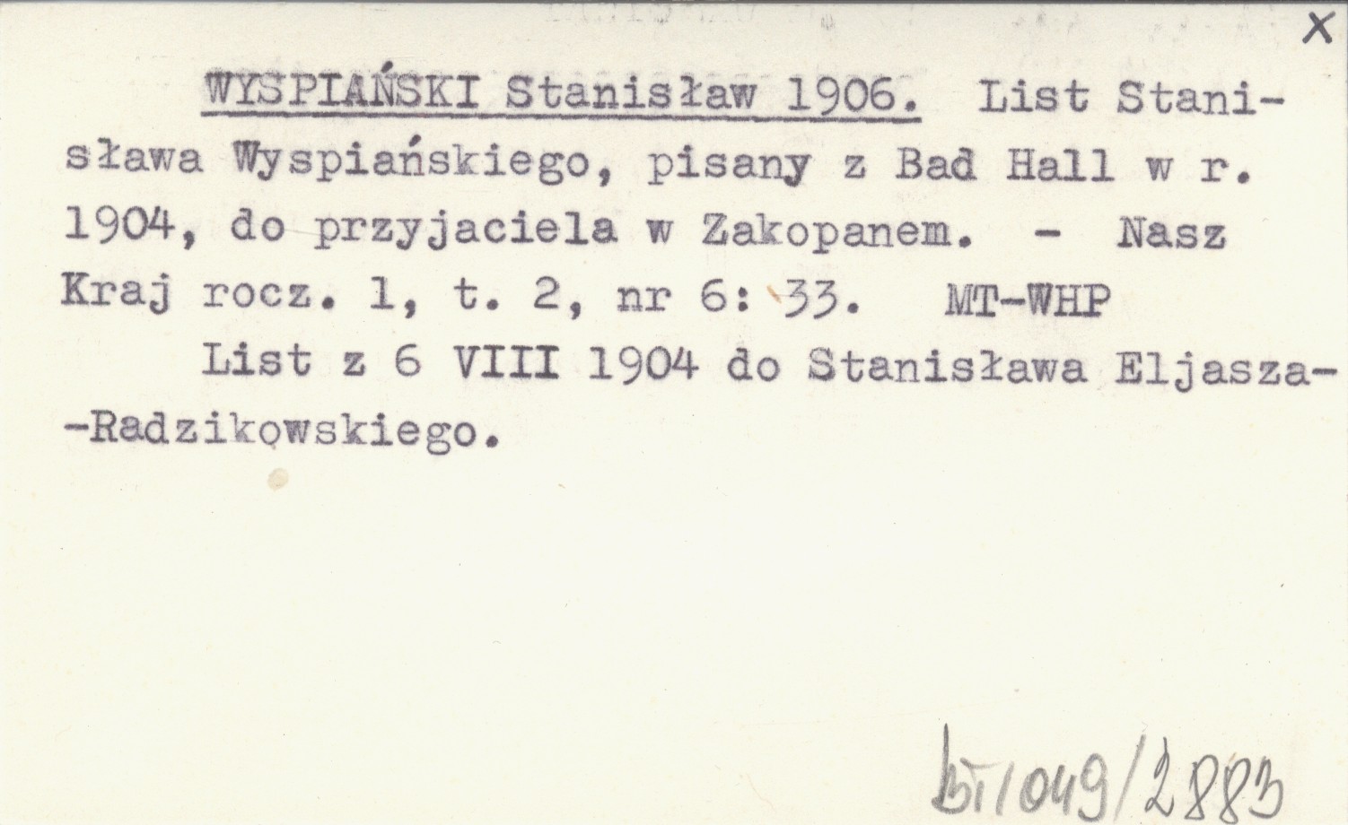 WYSPIAŃSKI Stanisław 1906 List Stanisława Wyspiańskiego, pisany z Bad Hall w r. 1904, do przyjaciela w Zakopanem.