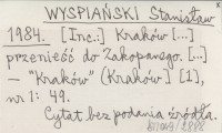 WYSPIAŃSKI Stanisław 1984 Kraków [...] przenieść do Zakopanego. [...].