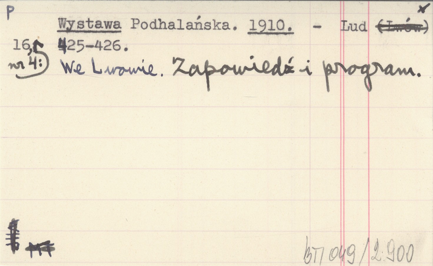 Lud, 16, nr 4: 425-426. We Lwowie. Zapowiedź i program.