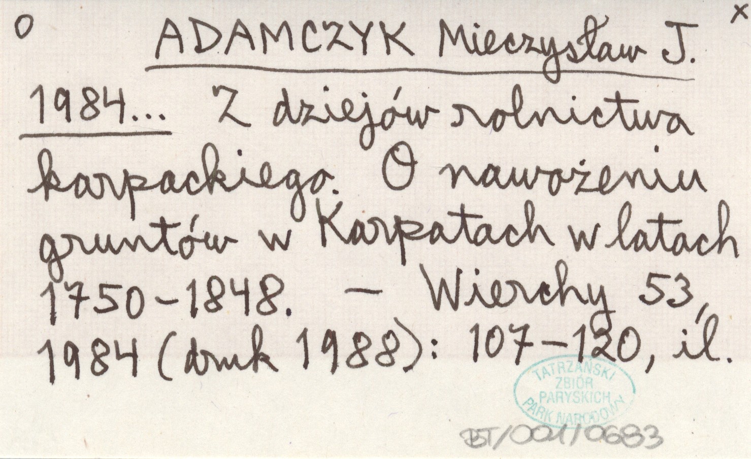 ADAMCZYK Mieczysław J. 1984... Z dziejów rolnictwa karpackiego. O nawożeniu gruntów w Karpatach w latach 1750-1848.