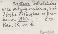 Wystawa Podhalańska prac artysty malarza, prof. Józefa Pieniążka w Krakowie. 1930...