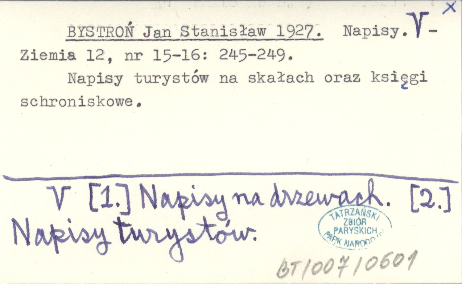 BYSTROŃ Jan Stanisław 1927 Napisy. [1.] Napisy na drzewach. [2.] Napisy turystów.